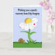 Esta tarjeta de Recuperación Rápida de la Cirugía de Hip hará sonreír a cualquiera. Con un fondo azul cielo, césped, margarita con corazón y caracol. ©2013 Cartas de sentimientos conservadores de Sherry Harris