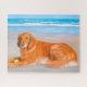 Este es un retrato de Murphy, un guapo Golden Retriever. Está descansando después de jugar en la playa con una pelota de tenis. Él es un perro hermoso con una gran personalidad. Hace un regalo único para los amantes del oro.