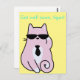 NewParkLane - Tarjeta postal divertida con un gato rosa dulce y genial con gafas de sol, sobre un fondo amarillo (fácil de personalizar) con la divertida cita '¡Hola, guapo!'