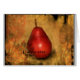 Una foto de una pera de bartlett roja es colgada en un fondo decorativo y angustiado.