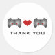 La moda rara y totalmente imprecisa es esta Boda Cute Gamer Gracias Pegatinas con un par de controladores de videojuegos con botones rojos. Un corazón en el medio conecta los dos controladores. Estos nerviosos pegatinas de agradecimiento son perfectos para la pareja de juegos. Fácil de personalizar, simplemente añada los detalles de su boda. Haga clic en "Personalizar" para encontrar más opciones de personalización.
