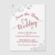 Estas bellas tarjetas magnéticas harán saber a tus amigos y familia que ahorrarás la fecha para tu próximo boda. La belleza cuenta con un fondo blanco clásico, caligrafía de escritura roja crimson y adornos de Relieves metalizados falsos de plata en las esquinas. Hermosa manera de hacer saber a tus amigos y familia sobre tu próximo boda.