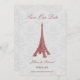 Personalice una invitación boda única con una torre roja Eiffel Damask Save the Date. El diseño de la invitación presenta la Torre Eiffel con un delicado fondo de encaje adamascado y un texto que puede personalizar con sus detalles de fecha boda. Además, guarde el anuncio de fecha disponible para este diseño en una variedad de colores.