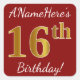 Red, Faux Gold 16th Birthday + Pegatina de nombre