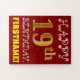 Este divertido y sencillo diseño de rompecabezas de cumpleaños presenta el mensaje "FELIZ CUMPLEAÑOS 19", con el "19" con un aspecto de color falso/imitación de color dorado. También incluye un nombre personalizado y un fondo de color rojo. Podría ser una manera divertida y especial de dar un saludo de cumpleaños personalizado a alguien que está celebrando su decimonoveno cumpleaños. [~Z0000200]