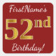 Red, Faux Gold 52nd Birthday + Pegatina de nombres