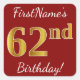 Red, Faux Gold 62nd Birthday + Pegatina de nombres