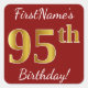 Red, Faux Gold 95th Birthday + Pegatina de nombre