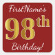 Red, Faux Gold 98th Birthday + Pegatina de nombre
