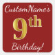 Red, Faux Gold 9Cumpleaños + Pegatina de nombre pe