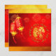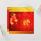 Imagen con farolillos chinos rojos y dorados con ideograma de la Rata , 2020 y "Feliz Año Nuevo" en chino con fondo rojo + papel dorado de una rata con saludo en inglés a su alrededor. Diseño en tarjeta cuadrada de invitación plana con textos para Fiesta chino de Año Nuevo a personalizar. Puede cambiar fácilmente el texto (fuente, color, tamaño y posición) haciendo clic en el botón personalizar. Tarjeta postal, tarjeta de felicitación y más... Perfecto para el Año Nuevo Chino de la Rata 2020.