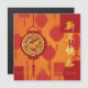 Red and orange silhouettes of various Chinese Lanterns as background + Golden vertical Chinese wishes + Happy New Year in English + small golden paper-cut of a Horse on a red lantern. Design on square magnetic card. You can delete this small image if you want to use the design for all Chinese New Years. Matching greeting card, horizontal holiday postcard and square sticker. Perfect for Chinese New Year of the Horse 2026.