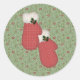 Este Pegatina de invierno presenta mitones de yeso rojo de estilo campestre sobre un fondo verde de impresión calico. ¡Perfecto para las vacaciones!