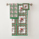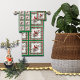 El patrón de fondo verde y blanco, con los bordes de Poinsettia y un pájaro mockingbird en una rama con bayas de invierno, crea un diseño único, clásico y atemporal.