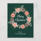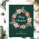 Esta divertida y festiva postal de Navidades acuarelas puede ser personalizada con un nombre o título. Cuenta con una corona de Navidades acuarelas con poinsettias rojas y un fondo verde oscuro. El texto combina el guión manuscrito y las fuentes serif modernas para un aspecto elegante y sofisticado.