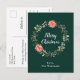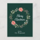 Esta divertida y festiva postal de Navidades acuarelas puede ser personalizada con un nombre o título. Cuenta con una corona de Navidades acuarelas con poinsettias rojas y un fondo verde oscuro. El texto combina el guión manuscrito y las fuentes serif modernas para un aspecto elegante y sofisticado.