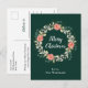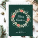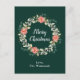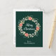 Esta divertida y festiva postal de Navidades acuarelas puede ser personalizada con un nombre o título. Cuenta con una corona de Navidades acuarelas con poinsettias rojas y un fondo verde oscuro. El texto combina el guión manuscrito y las fuentes serif modernas para un aspecto elegante y sofisticado.