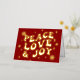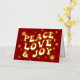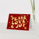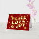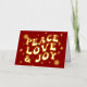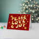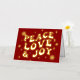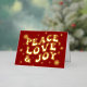 Send warm retro cheer with this Peace Love Joy Christmas card in classic red. The 70s-inspired groovy lettering and bold vintage palette bring nostalgic holiday vibes with a modern twist — perfect for spreading festive joy.