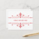 Sencilla y elegante Fancy Ornamental Boda Número de tabla postal en rojo y blanco con un sofisticado estilo art deco con un florido borde ornamental. Fácil de personalizar, simplemente agregue los números de tabla apropiados en el campo de texto proporcionado. Haga clic en "Personalizar" para encontrar más opciones de personalización.