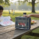 Fuel your child's imagination with this delightful watercolor toy car lunchbox! The centerpiece is a charming red vintage-style racecar, complete with a plush brown seat and the distinctive '02' marking. Set against a dark gray panel and framed by a classic navy and green plaid, this design evokes a sense of retro adventure. It's a wonderful way to carry lunch, snacks, or treasures, and the customizable name feature makes it a truly personal item for any young enthusiast. Imagine the excitement of opening this unique lunchbox each day!