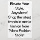 En "Mens Fashion Store", donde la moda se encuentra con la funcionalidad, podrá adentrarse en un mundo de estilo inigualable. Explore nuestra exclusiva colección de ropa y accesorios para hombres diseñados para elevar su apariencia, desde artículos de primera necesidad hasta ropa sofisticada. Haga sus compras en nuestra tienda online y disfrute de envío rápido, calidad superior y diseños únicos a su gusto. Ya sea que esté refrescando su armario o buscando una pieza especial, tenemos todo lo que necesita para expresar su estilo con confianza. ¡Visítenos hoy y transforme su forma de vestir!