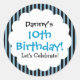 Redonda 10.ª Pegatina de cumpleaños Blue Stripes V1CA