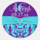 Redonda 1.5" Morado, Turquesa Damask Sweet 16 Pegatina