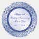 Diseño de imágenes Digitalbcon con un color azul zafiro y un tema de diseño floreciente con una variedad de imágenes, formas, patrones, estilos y fuentes personalizados en este Pegatina redondo de un solo tipo "Aniversario Boda de zafiro". Este diseño colorido y atractivo se completa con letras de texto en personalizable para su ocasión especial. COMPLETE SU CELEBRACIÓN ANIVERSARIA BODA CON TARJETAS DE INVITACIÓN COMPARADORAS, RSVP, COJÍN DECORATIVO, PLATAS, NAPKINS DE PAPEL, LÁMINAS, MAGNETS, BOTONES, CHOCOLATES ASORTADOS, CAJA DE REGALOS, ETC.