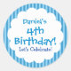 4.ª Pegatina de cumpleaños Blue Stripes V1C Este pegatina a rayas bonito le agrega un toque encantador a sus invitaciones de cumpleaños y a sus favores de cumpleaños. ¡Qué lindo! ¡Personaliza con el chica de cumpleaños o el nombre del niño! <br>() Visita mi<br>()<a href="http://www.zazzle.com/jaclinart_birthday">Tienda de Cumpleaños<strong>() para más selecciones de cumpleaños.