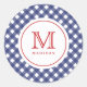 Redonda 4 De Julio Cheques Azules Pegatina Monograma Rojo