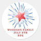 Un pegatina festivo del 4 de julio de apellido familiar para una barbacoa. Solo agrega tu apellido. Azul blanco rojo.