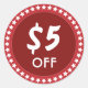 Redonda 5 Dólares de descuento en ventas Pegatina rojo