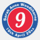 Conmemorar un noveno cumpleaños con una insignia decorada con el nombre del destinatario, así como su edad y fecha de nacimiento. Edad 9.