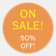 Redonda "¡A LA VENTA! ¡50% APAGADO!" Pegatina