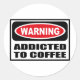 Aviso ADDICTED AL Pegatina COFFEE puede personalizar en www.WarningSignShirts.com y presenta un aviso rojo y negro y ADICTO AL CAFÉ en negrita para advertir al mundo. También puede personalizar a su propio Pegatina de signos de advertencia con el texto que desee.