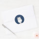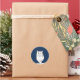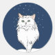 Pegatina con adorable gato persa chino blanco con ojos verdes caminando sobre la nieve por la noche. El diseño es personalizable.