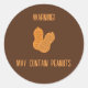 Este hermoso pegatina tiene una foto de cacahuetes en un fondo marrón profundo. El mensaje es "¡Advertencia! Puede contener cacahuetes". Disfruta de tu nuevo Aviso Puede Contener a Peanuts Classic Round Pegatina!