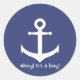 Redonda ¡Ahoy! It's a Boy! Pegatina de Baby Shower Nautica