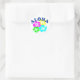Aloha en el idioma hawaiano significa afecto, amor, paz, compasión y misericordia. Desde mediados del siglo XIX, también ha llegado a ser utilizado como un saludo inglés para decir adiós y hola. Actualmente, se utiliza principalmente en el sentido de hola. Este pegatina redondo contiene un diseño colorido de flores hawaianas en rosa, amarillo, verde y azul. Gráfico muy tropical con un efecto desgastado sobre él.