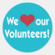 Redonda Amamos a nuestros voluntarios Pegatina del corazón