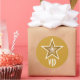 El diseño moderno con un oro "brillante" y el blanco protagonizan en un fondo amarillo oscuro. Pegatina con un oro y diseño adaptable blanco para que usted personalice con su propio texto, imágenes e ideas. Observe por favor que esto es una imagen impresa creada usando las fotografías originales y las técnicas digitales, él no brilla ni no contiene chispas reales.