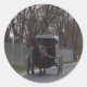 Este pegatina muestra una fotografía de un caballo y un buggy en el condado de Lancaster, Pennsylvania.