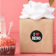 Amo a Reno en letras grandes y audaces sobre un diseño de corazón negro, blanco y rojo.