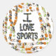 Sea cual sea el deporte que disfrutes, es probable que esté representado en este pegatina: baloncesto, fútbol, billar, fútbol, béisbol. El texto dice: "AMO LOS DEPORTES".