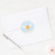 Pegatina con un sonriente personaje de pastel de comida angel. Esta linda tarta tiene alas y un halo ya que se ve desde un fondo azul. Las palabras "Angel Food Cake" se escriben debajo y se pueden personalizar.