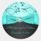 Redonda Aqua y Black Floral Pegatina