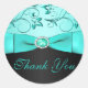 Redonda Aqua y Floral Negra Gracias Pegatina Boda
