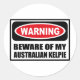 Cuidado con mi Pegatina AUSTRALIANO KELPIE que puedes hacer personalizar en www.WarningSignShirts.com y presenta una señal de advertencia roja y negra y CUIDADO CON MI KELPIE AUSTRALIANO en negritas letras negras para advertir al mundo. También puede personalizar a su propio Pegatina de signos de advertencia con el texto que desee.