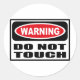 Advertencia NO TOCAR Pegatina puedes personalizar en www.WarningSignShirts.com y presenta un aviso rojo y negro y NO TOCAR en negrita en letras negras para advertir al mundo. También puede personalizar a su propio Pegatina de signos de advertencia con el texto que desee.