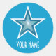 Diseño moderno con una estrella "brillante" azul y blanco sobre un fondo azul. Pegatina con un diseño de personalizable para que usted pueda personalizar con su propio texto, imágenes e ideas. El texto puede cambiarse fácilmente utilizando la plantilla proporcionada o haciendo clic en el botón "Personalizar" para realizar más modificaciones. Tenga en cuenta que se trata de una imagen impresa creada con fotografías originales y técnicas digitales, que no brilla ni contiene chispas reales.